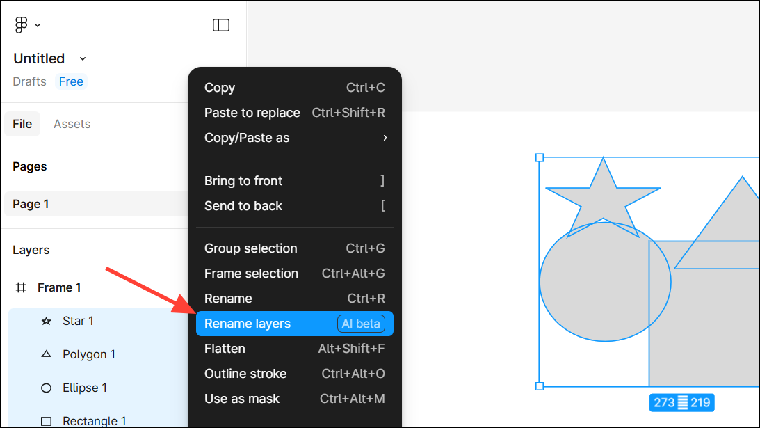 Step 1: Select the layers you want to rename in the canvas or layers panel. Figma AI will only rename layers that still use the default naming convention, such as frames, groups, rectangles with image fills, text layers, and instances with default names. Already renamed, hidden, or locked layers, as well as certain vector shapes, will be skipped.