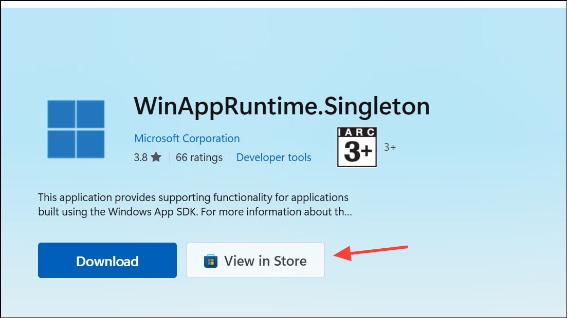 Step 4: Visit the Microsoft Store page for App Runtime Singleton. Click View in Store and try updating the app directly. Afterward, retry updating or installing other apps in the Microsoft Store.