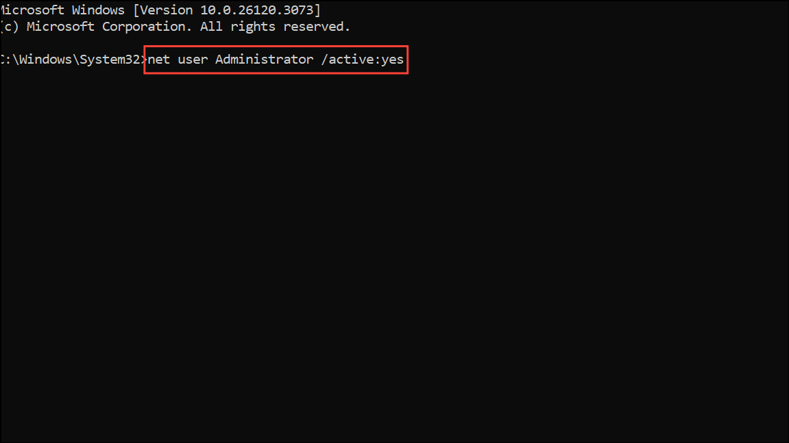 Step 2: Enable the built-in Administrator account by running: