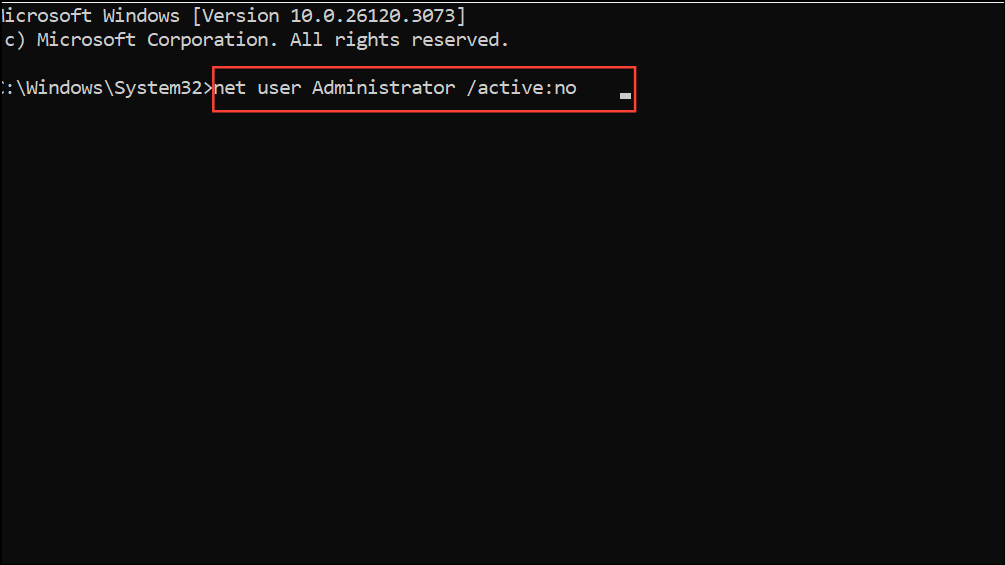 Step 5: Log out of the Administrator account and sign in with your main account using the new password. For security, consider disabling the built-in Administrator account by running:
