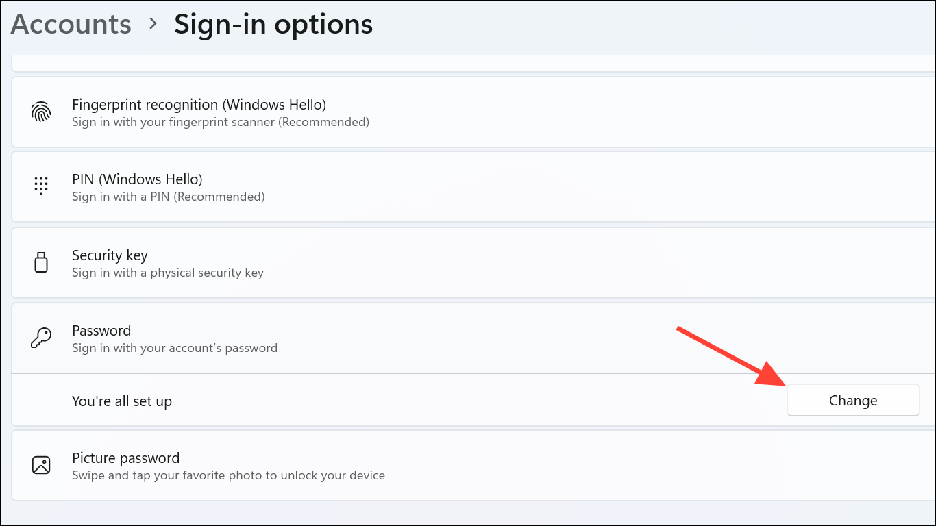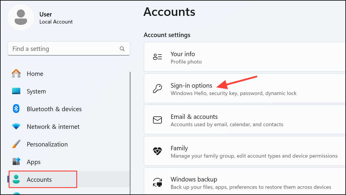 Step 2: Open Settings > Accounts > Sign-in options.
