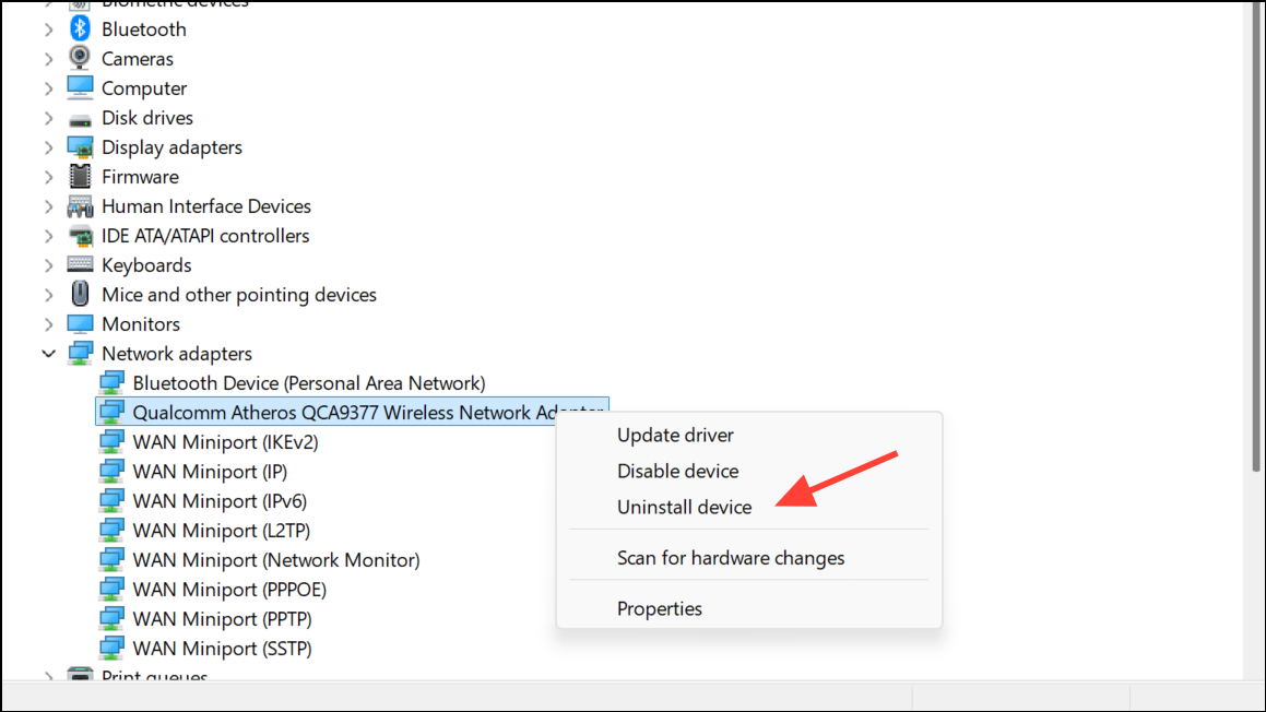 Step 3: Confirm the uninstallation if prompted. Once removed, restart your PC. Windows 11 will automatically detect the missing adapter and reinstall its driver upon reboot.