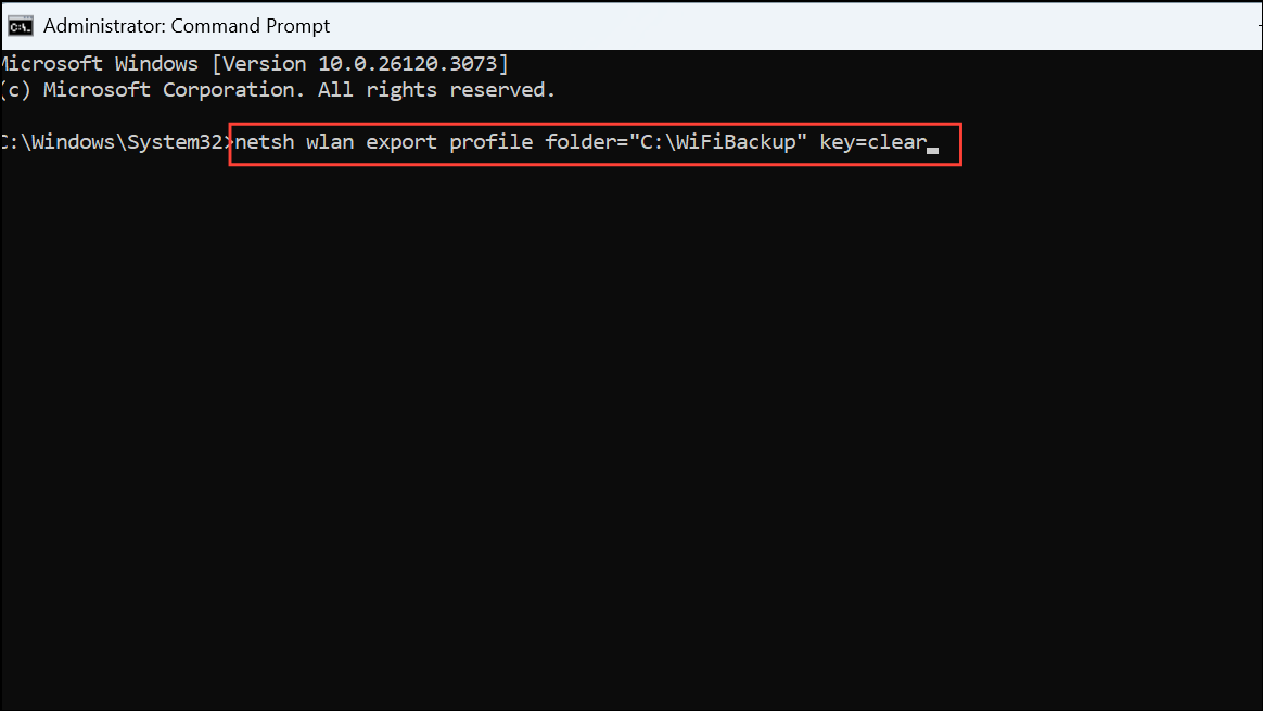 Step 3: After resetting your network and restarting, open Command Prompt as an administrator. Restore the profiles by running:
