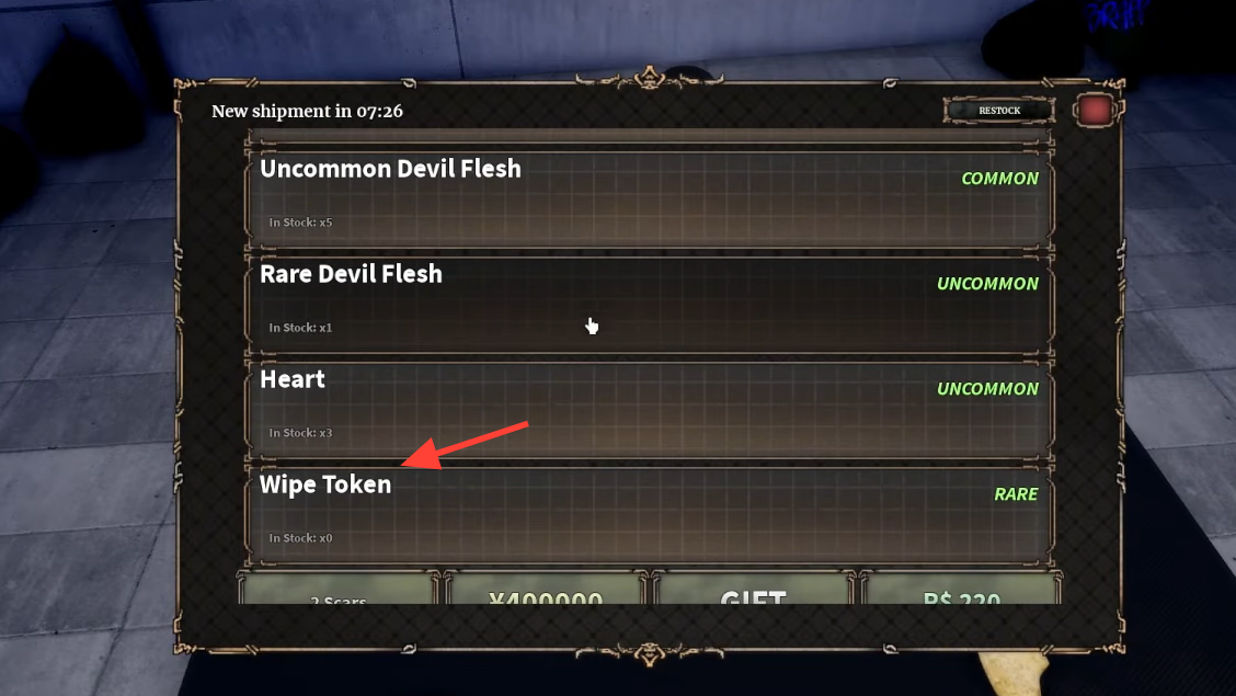 Step 2: Check the list of products for a Wipe Token. The vendor’s stock can change, and the token appears only occasionally.
