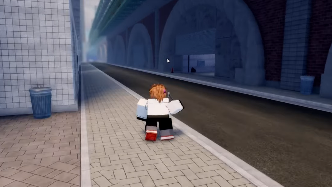Once you are in the Shopping Street district, there is a clearer landmark: the Black Market NPC sits under a bridge, to the right of the district’s entrance. Under the bridge, only a single shutter is open; that open shutter is the Black Market stall. The seller is seated among a spread of items.