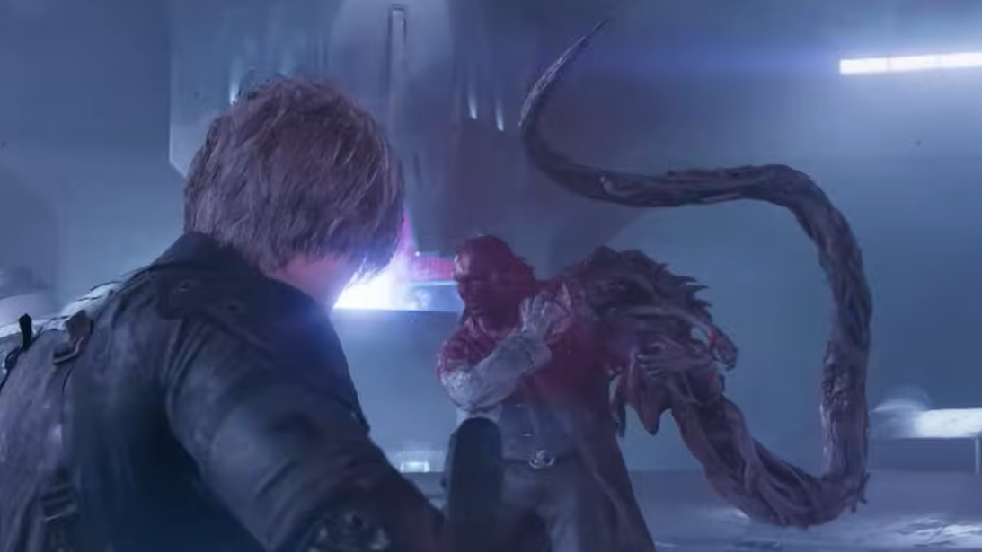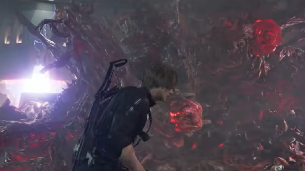 Victor's transformation plays out in two phases. The first phase features tentacle arms that mirror the humanoid Tyrant form of the original Nemesis. In the second phase, Victor becomes a massive, blob-like monstrosity reminiscent of Nemesis' final form from Resident Evil 3, complete with glowing pustules you need to shoot. Leon finishes Victor off by blasting the creature's core with the Requiem weapon, reducing it to a puddle of organic matter.