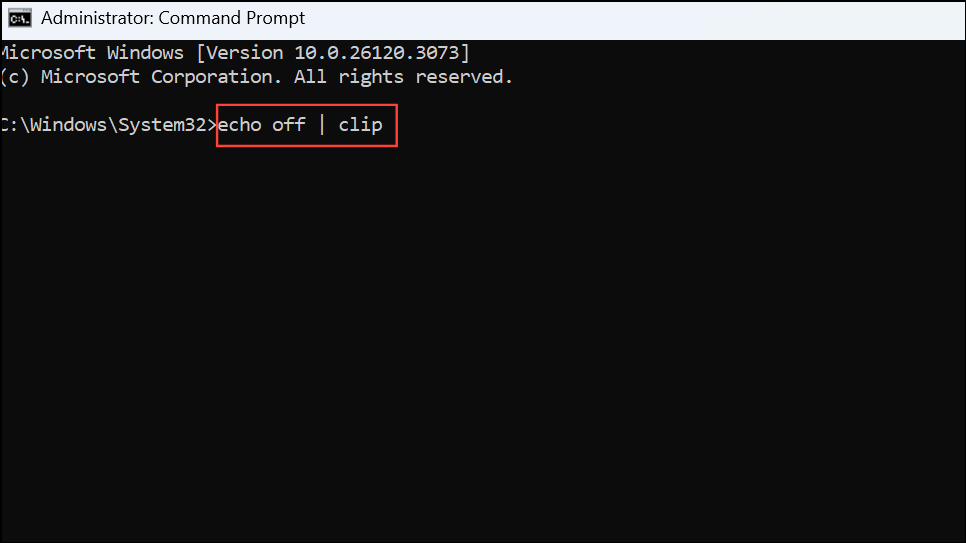 Step 2: In the Command Prompt window, enter the following command to clear the clipboard contents: