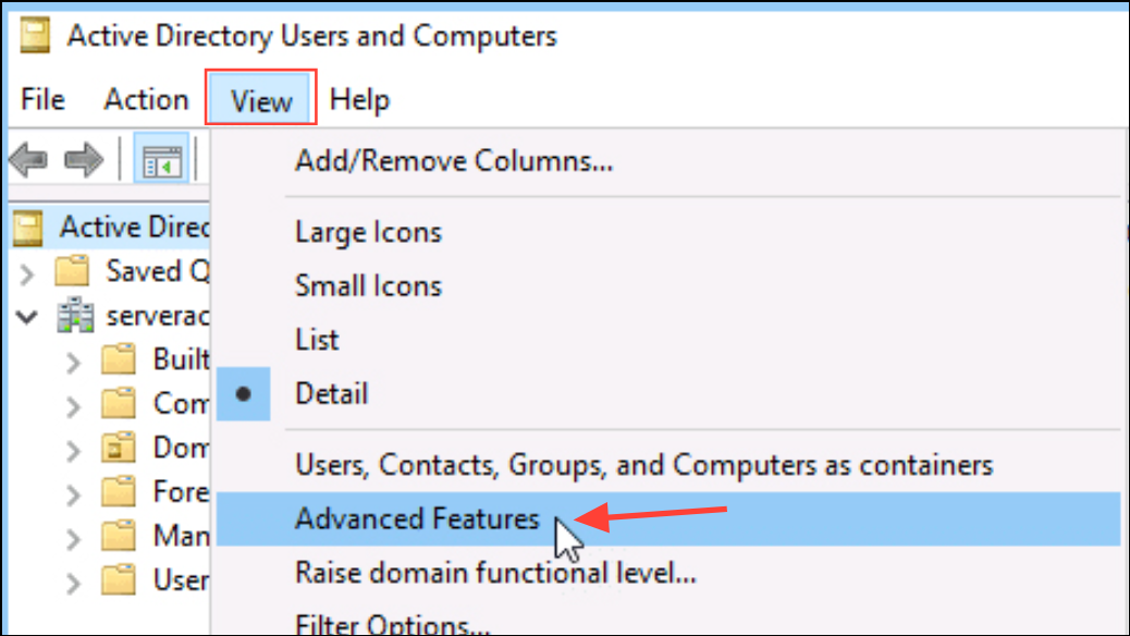 Step 2: In the console, enable the "Advanced Features" view from the View menu. This option displays additional configuration tabs and security settings required for permission changes.