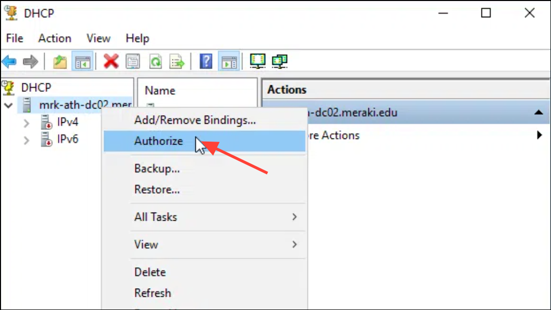 Authorizing the DHCP Server Using DHCP Management Console