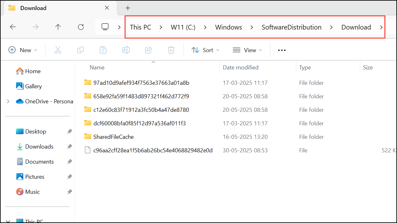 Step 1: Open File Explorer and navigate to C:\Windows\SoftwareDistribution\Download.