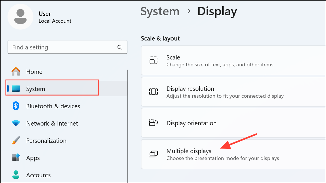 Step 2: Navigate to System > Display. Scroll down to the Multiple displays section.