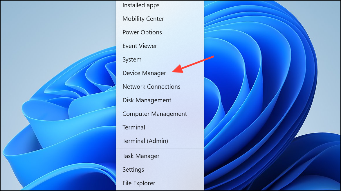 Step 1: Open Device Manager by right-clicking the Start button and selecting Device Manager.