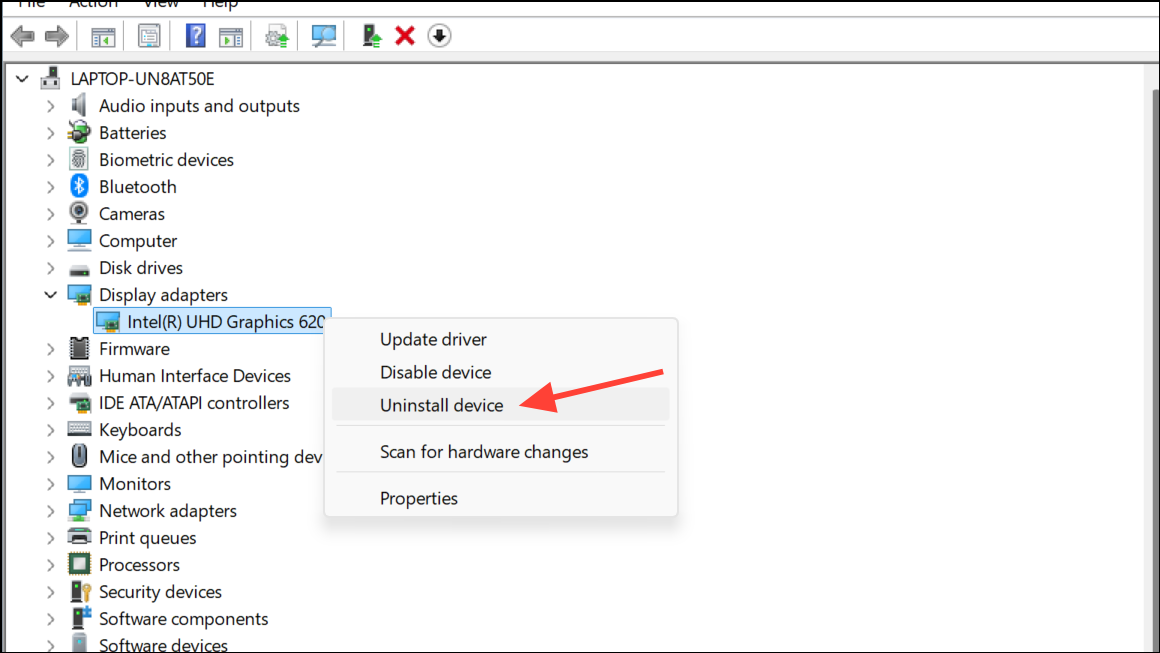 Step 5: If updating doesn’t resolve the issue, try uninstalling the graphics driver: In Device Manager, right-click your display adapter, select Uninstall device, check Delete the driver software for this device if available, and confirm.