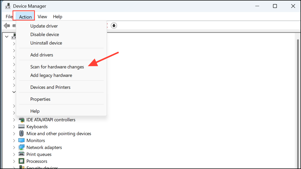 Step 6: Restart your PC, and Windows will attempt to reinstall the correct driver automatically. You can also use the Scan for hardware changes option in Device Manager if the driver doesn’t reinstall on reboot.