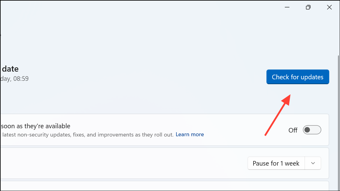 Step 1: Open Windows Update by going to Settings > Windows Update. Click Check for updates and install any available updates. Updates often include fixes for hardware compatibility and display bugs.