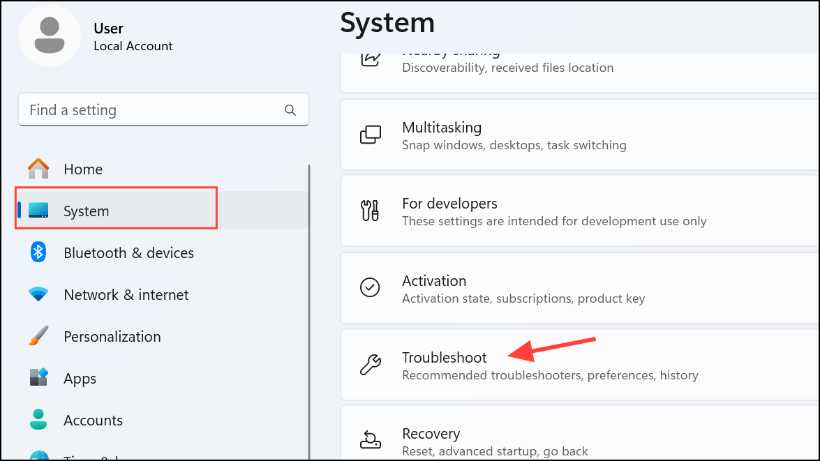 Step 1: Use built-in troubleshooters: Go to Settings > System > Troubleshoot.