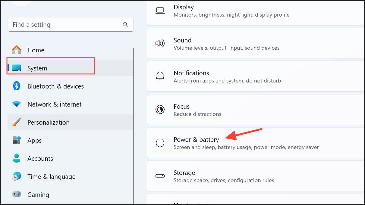 Step 1: Open Settings and go to System > Power & battery (Windows 11) or Power & sleep (Windows 10).
