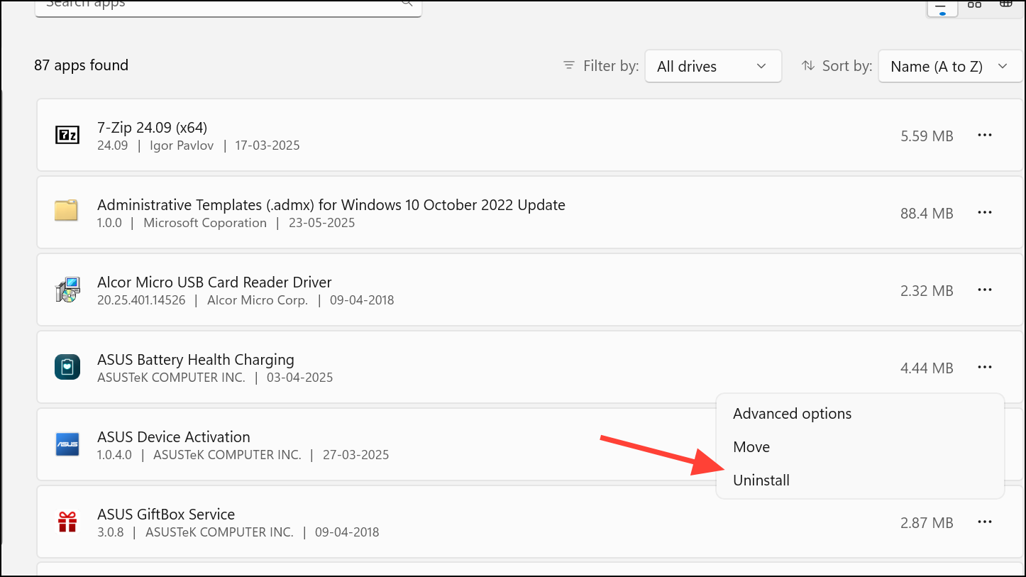 Step 2: Locate the affected application, click the three-dot menu, and select Uninstall.
