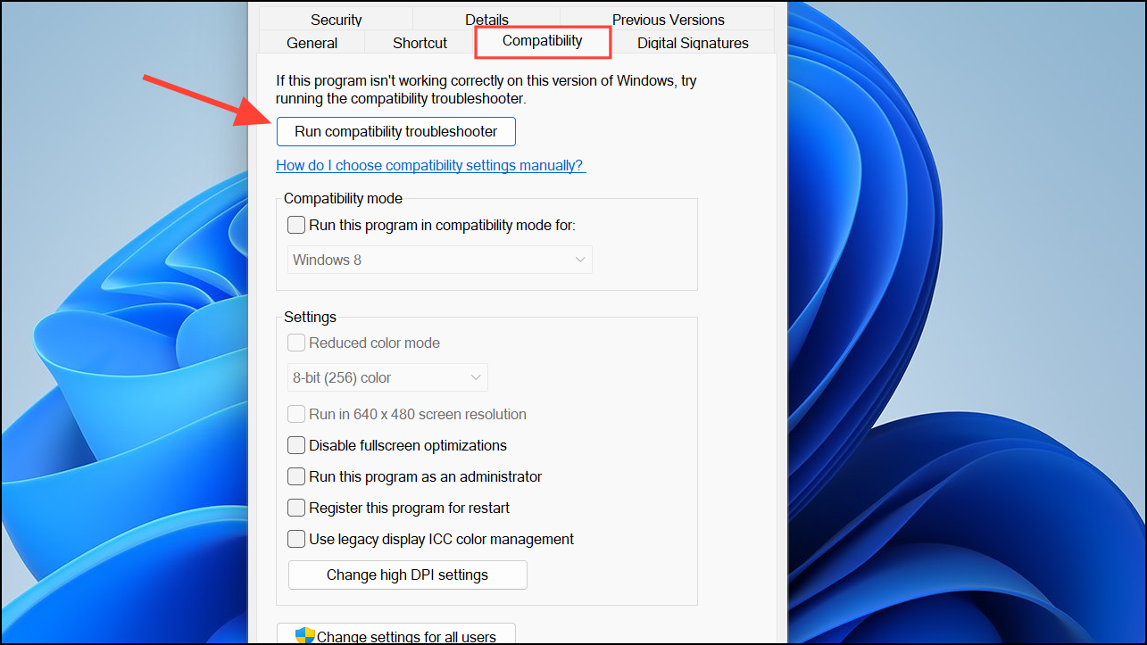 Step 3: Follow on-screen prompts to test recommended settings or specify issues. If needed, manually set the program to run in compatibility mode for an earlier version of Windows or as an administrator. These adjustments can resolve crashes caused by software incompatibility with Windows 11.