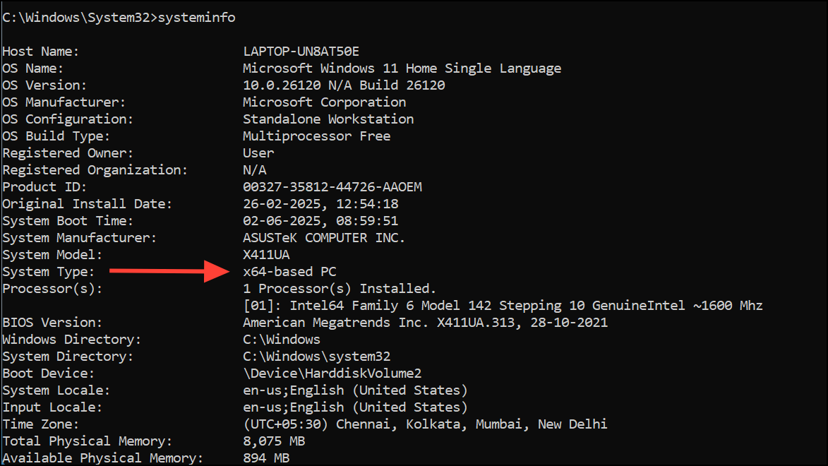 Step 1: Identify your system architecture by running the following command in Command Prompt: