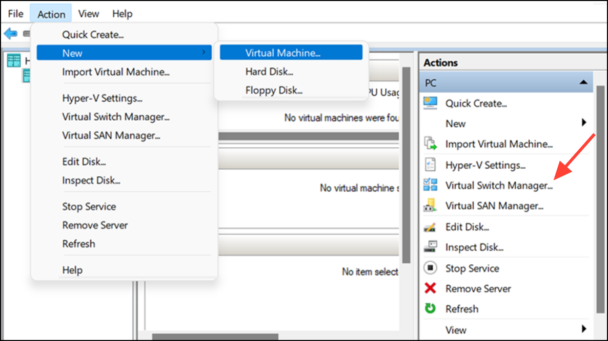 Step 2: In the right-hand pane, select Virtual Switch Manager. Review the list of existing virtual switches. Ensure your Ubuntu VM is connected to an External virtual switch, which provides direct access to the physical network, rather than an Internal or Private switch that restricts traffic.