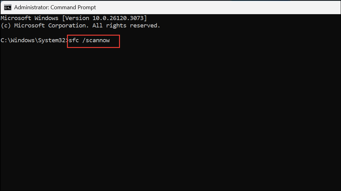 This command will attempt to repair system files using the now-updated system image. If SFC reports that all files were successfully repaired, the issue is resolved.