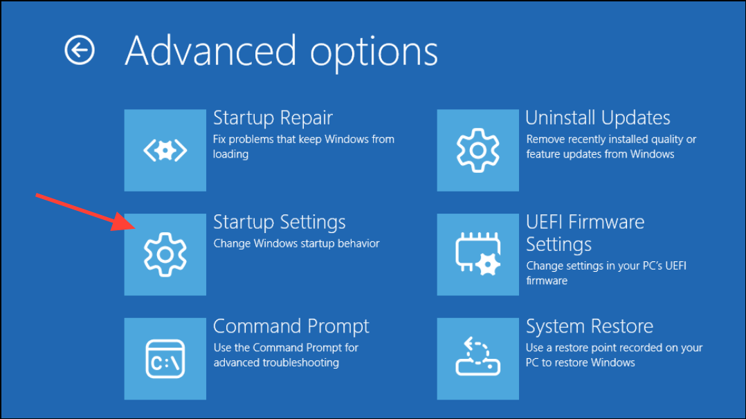 Step 2: After your PC reboots to the Windows Recovery Environment, select Troubleshoot > Advanced options > Startup Settings, then click Restart.