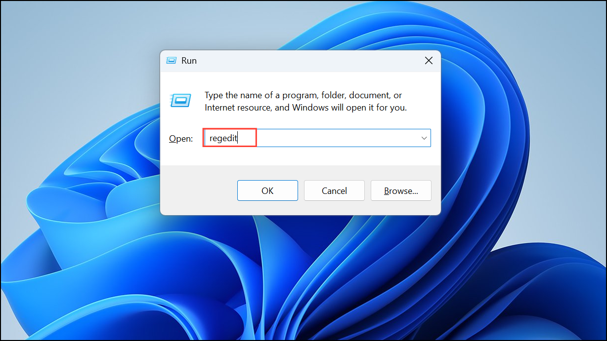 Step 3: Press Windows + R, type regedit, and press Enter.