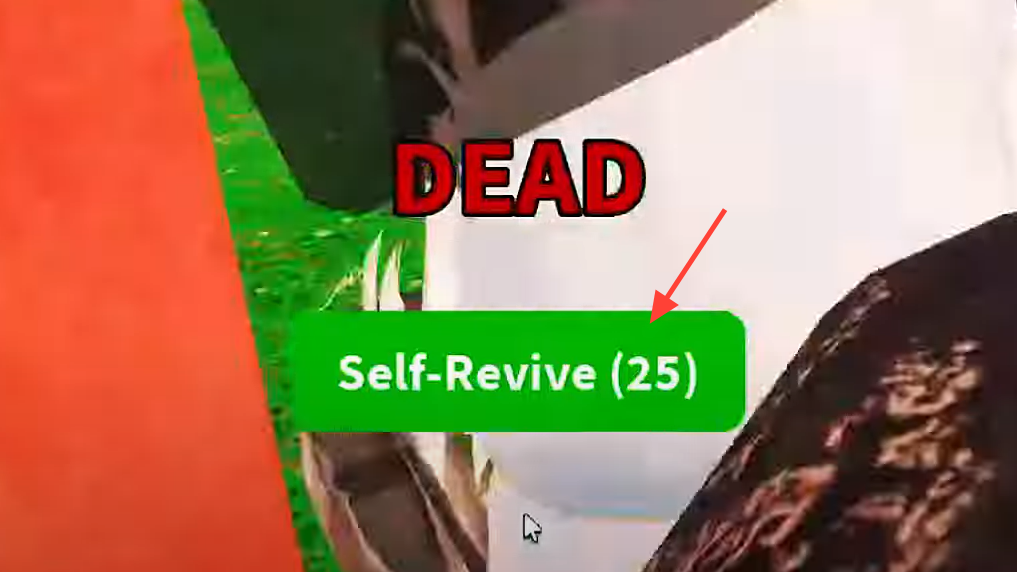 Step 1: When downed, select the green Self Revive button under the Dead panel; the cost is 45 Robux.