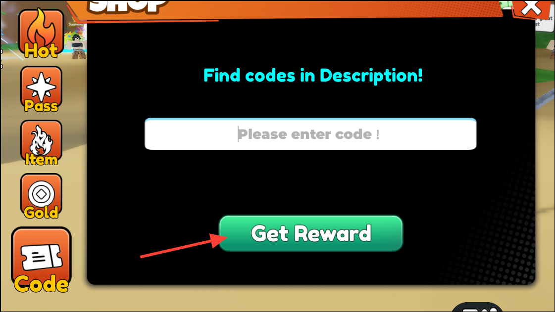 Step 5: Press Get Reward to claim your items. If a code doesn’t work, rejoin to switch servers and try again.