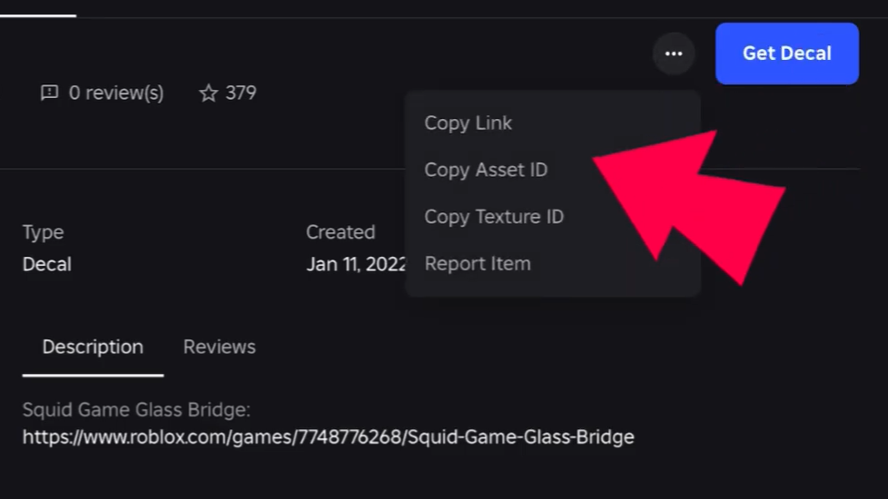 Step 3: Copy one of the decal IDs from the list above and paste it into the Decal ID or Image ID field.
