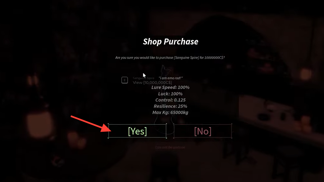 The Sanguine Spire is a high‑end rod with 100% Lure Speed and 100% Luck, infinite Max Kg, and powerful passives. It only appears in the Underground Music Venue when the CORRUPTION Admin Event is active, so timing and preparation matter.