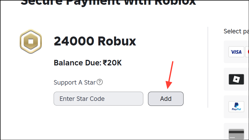 Step 4: Complete checkout as normal; you receive the full Robux amount, and the creator receives 5%.