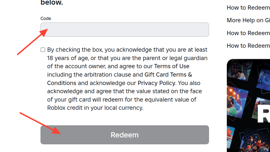 Step 4: For promo codes from events or giveaways, follow the same process on the redemption page. See Roblox Support: How Do I Redeem a Promo Code?.