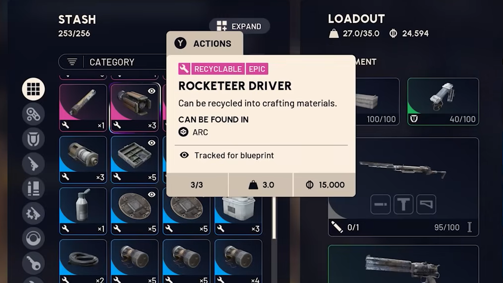 The Rocketeer Driver is an Epic-rarity ARC component in ARC Raiders, and it's one of the most important materials you'll need for mid-game progression. It weighs 1.0, sells for 3,000 Coins, and its primary purpose is upgrading the Explosives Station from level 2 to level 3, which in turn unlocks Wolfpack grenade crafting. You'll also need one Rocketeer Driver per Wolfpack you craft at that station.