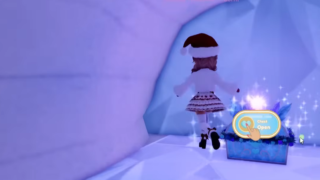 The first Glitterfrost chest is placed in the newly redecorated Ice Castle version of Royale High Campus 2. It’s tucked into an icy cave just off the main entrance.