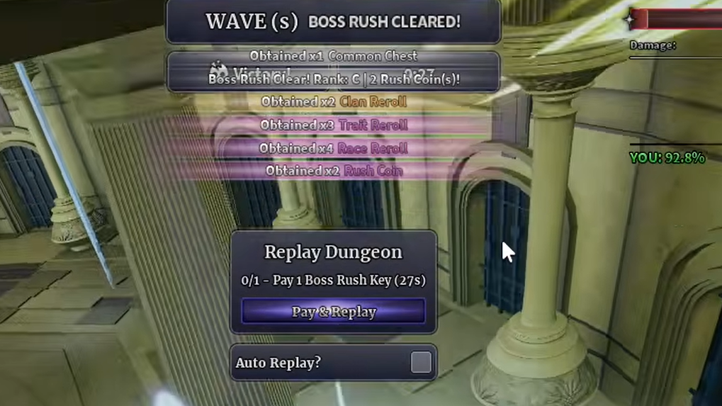 Boss Rush consists of 15 waves, each spawning a hostile boss in the center of the arena. You have five minutes per wave to take the boss down. Every boss attacks unprovoked, so activate Observation Haki for dodging and Armament and Conqueror Hakis for damage boosts before engaging.