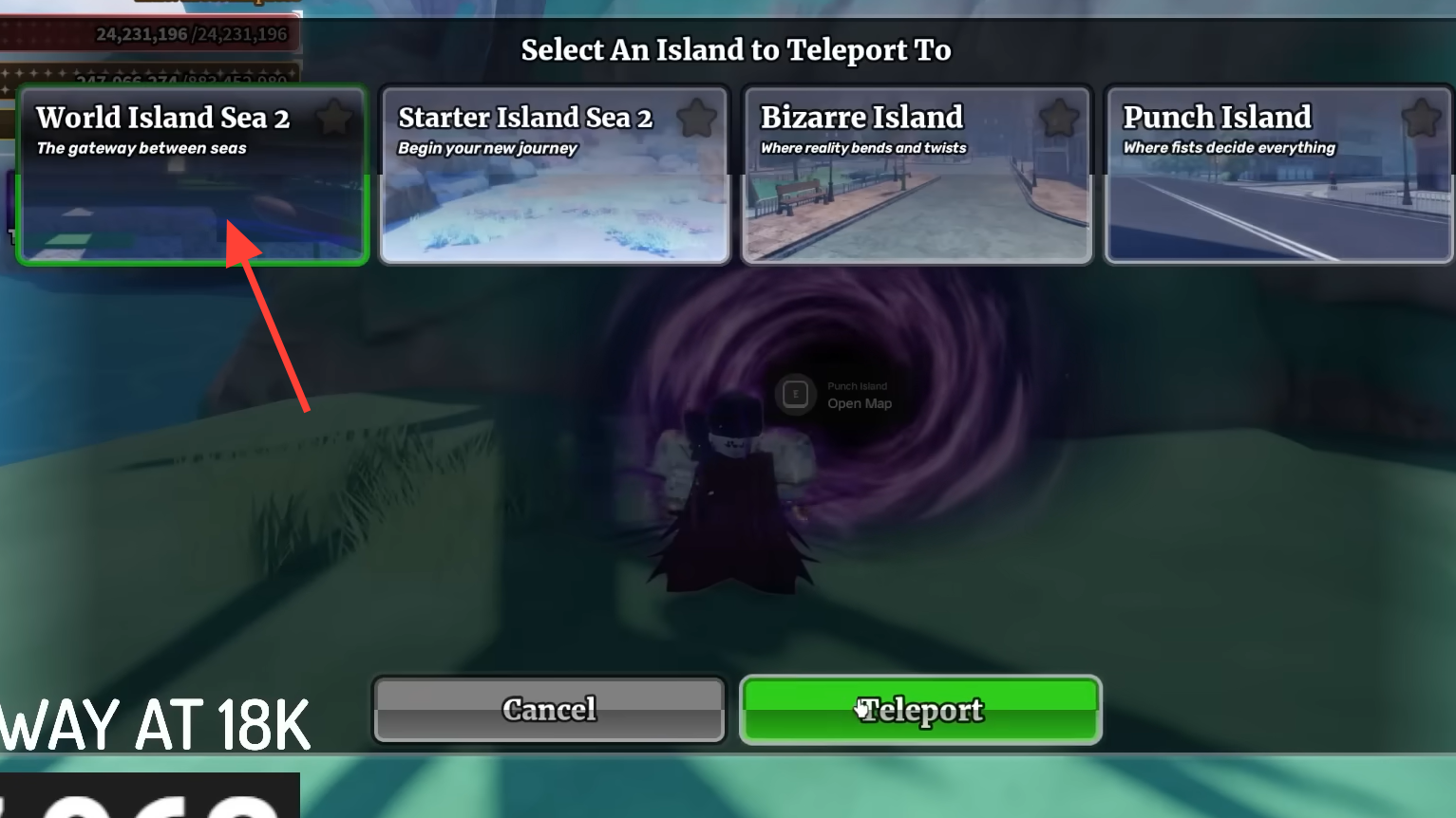 Step 1: Travel to Bizarre Island using a Sea 2 teleporter. This island also hosts the Strong Bandit, so it is worth setting up a farming loop here anyway.