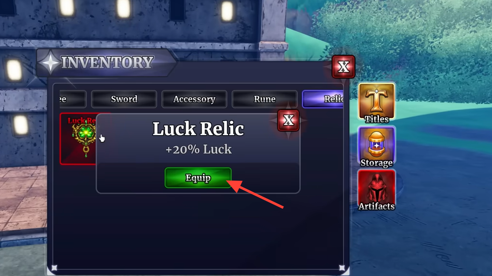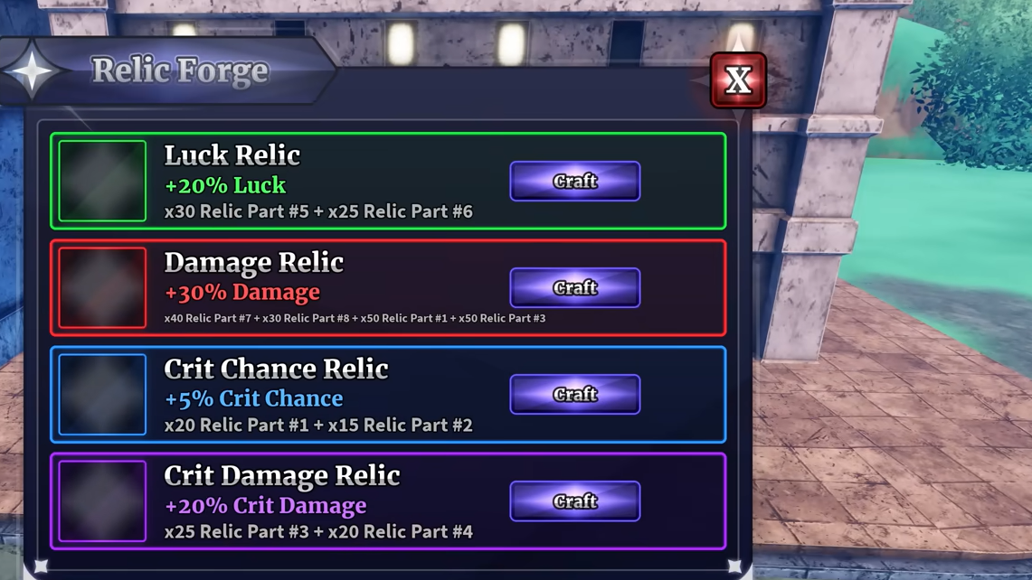 | Luck Relic | +20% Luck | 30× Relic Part #5, 25× Relic Part #6 |
