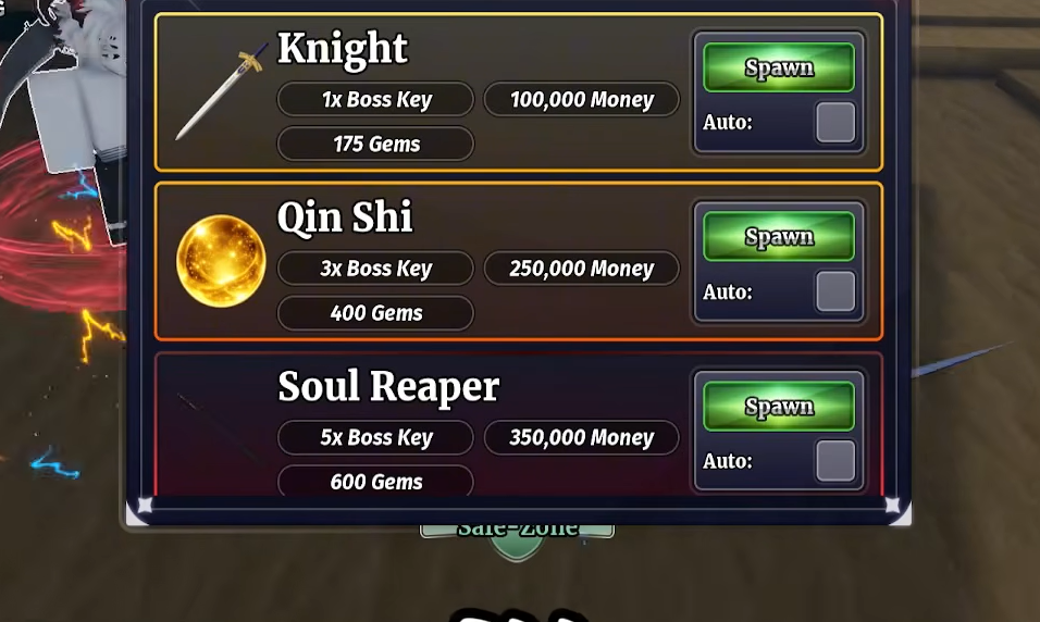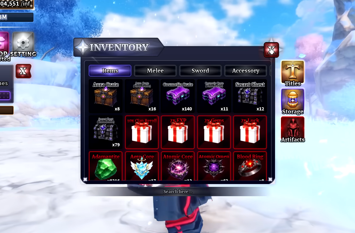 | Sets, Gamepasses, Boss Drops, Chests, Crafting Materials, Rerolls (most), Keys | Coins, Gems, Swords, Melee styles, Devil Fruits |