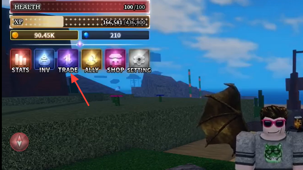 Step 1: Open the trade menu by clicking the purple Trade icon on the left side of the screen. This pulls up the list of players currently in your server.