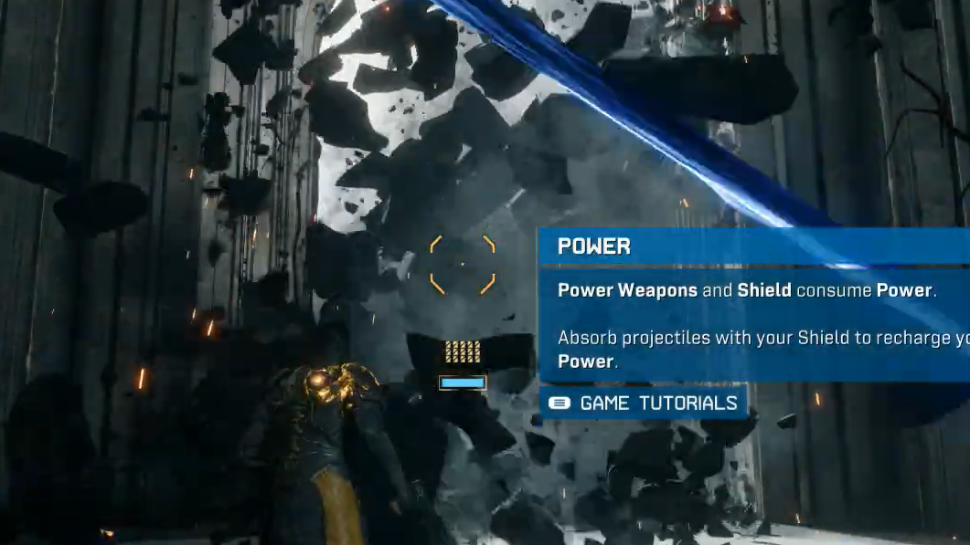 Power Weapons run on the Power charge bar, the same resource your shield uses. The bar fills as you damage enemies and, more efficiently, by absorbing blue projectiles with your shield (R1). If the bar is not full enough, the Power Move simply will not fire.