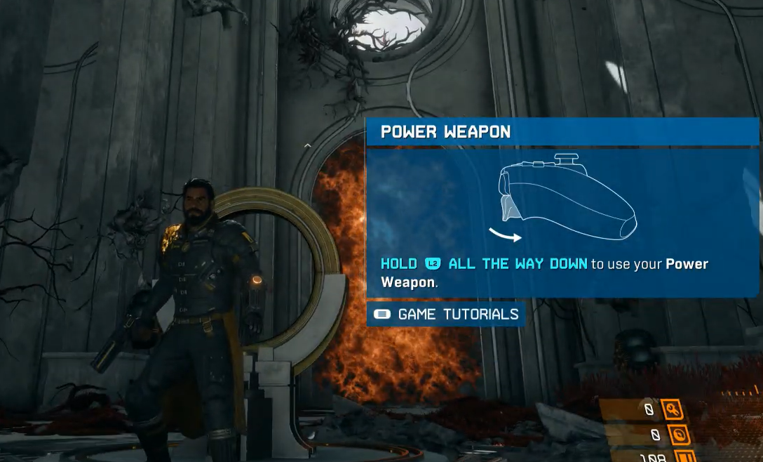 | L2 (full pull) | Enters Power Weapon mode; arm glows orange |