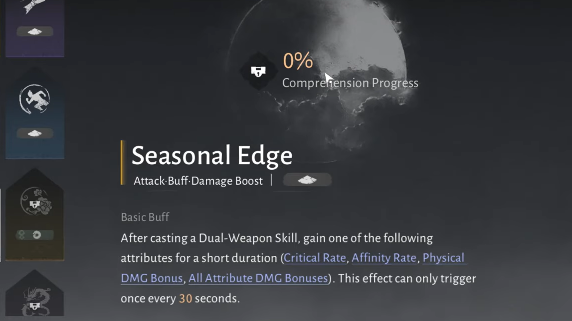 Seasonal Edge is a Legendary Inner Way in Where Winds Meet built around a simple loop: use a Dual-Weapon Skill (the action that swaps to your other weapon), and you receive a short offensive buff. The trade-off is that the buff is random and the effect has a cooldown, which is why it often shows up as a flexible slot rather than a “must-pick” core piece.