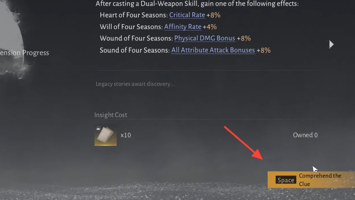 Step 4: Open your Inner Ways menu and use the Comprehend option to combine the pages and unlock Seasonal Edge.