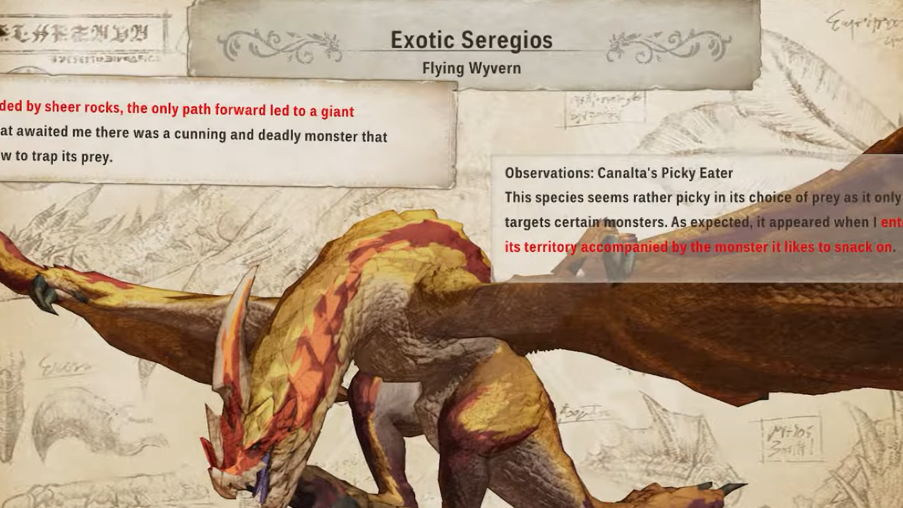 Seregios is a 6★ Flying Wyvern monstie in Monster Hunter Stories 3: Twisted Reflection, covered head to tail in razor-sharp scales it can launch like projectiles. It exists in three forms — standard Seregios, Invasive Seregios, and Exotic Seregios — and getting your hands on one requires either raiding the right dens or forcing the monster to retreat in battle.