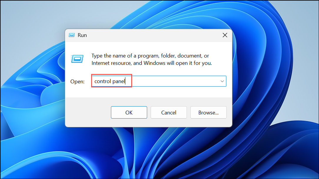 Step 1: Press Win + R to open the Run dialog. Type Control Panel and press Enter to launch the classic Control Panel interface.