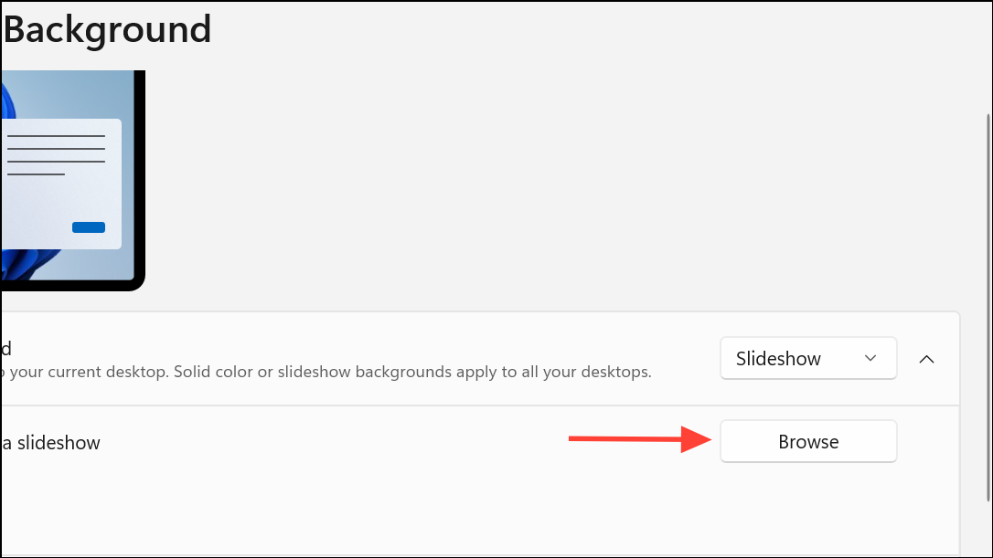 Step 3: Under the Background drop-down menu, select Slideshow. This enables slideshow mode for your desktop backgrounds.