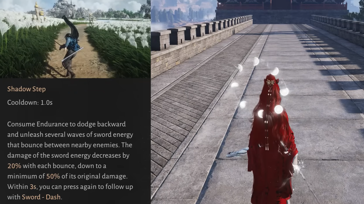 - Effect: Consumes Endurance to dodge backward and emit Sword Qi