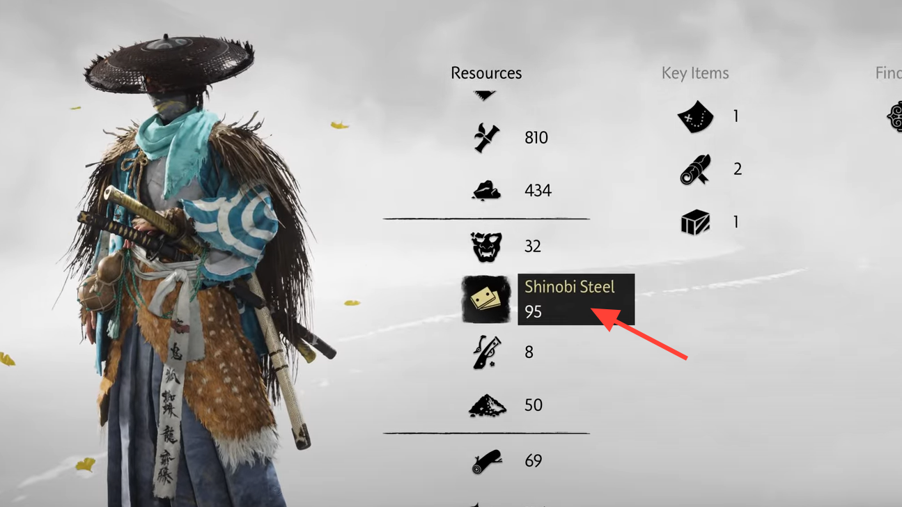 | Shinobi enemy drops | Teshio Ridge (roaming squads, dens/hideouts) | High (enemies respawn across the region) | Look for white-clad shinobi wielding a kusarigama, tossing kunai and smoke bombs. Clear patrols and loot bodies. |